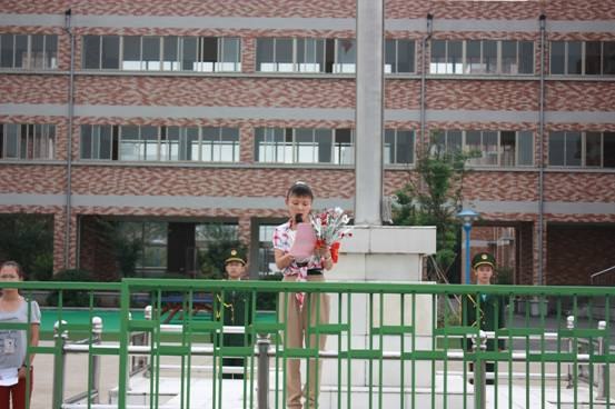 虽然预定的程序中并没有特别安排学校领导讲话,但当贺剑英副校长双手接过少先队员送来的鲜花时,还是情不能自己,她代表湖中的