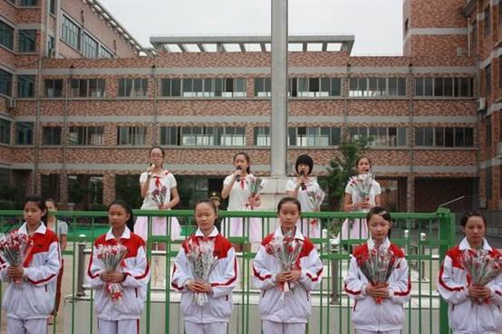在9月10日教师节的升旗仪式上,湖塘桥初级中学10名清纯可爱的女孩,用一首配乐诗朗诵《老师,我赞美您》,代表全校2144名同学深情表达对老师的赞美,也向老师们送上了最真诚的节日祝福。