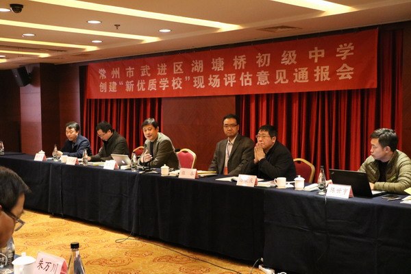 12月21日下午至23日,湖塘桥初级中学迎来了常州市义务教育“新优质学校”现场评估。评估专家组由南京汉开书院王占宝院长等六人组成,区教育局郑全伟局长,王腊美书记,谢建伟副局长,基础教育科朱炳助科长,庄骅副科长等陪同参加了本次评估活动。