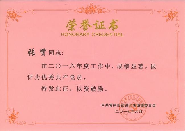 我校张贤同志获2016年度湖塘镇“优秀共产党员”!
