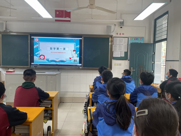 “同学们,上课时间到了……”熟悉的音乐铃声宣示着居家学习生活结束了,湖塘桥初级中学全体初三师生迎来了久违的“复学第一课”!